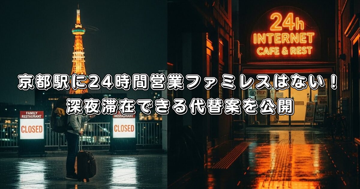 こんにちは。京都ノオト、運営者の「MASA」です。 夜行バスで京都駅に着いた深夜や、飲み会後に終電を逃してしまったとき、とりあえず24時間営業のファミレスを探して暖を取りたいと考える方は多いのではない ...