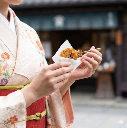 そんな着物女子(もちろん男性も!)におすすめなのが、一口サイズで楽しめるグルメです。