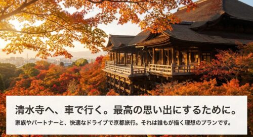 京都観光の代名詞とも言える清水寺。せっかくの旅行だから、家族やパートナーと車で快適に移動したいと考えるのは自然なことですよね。