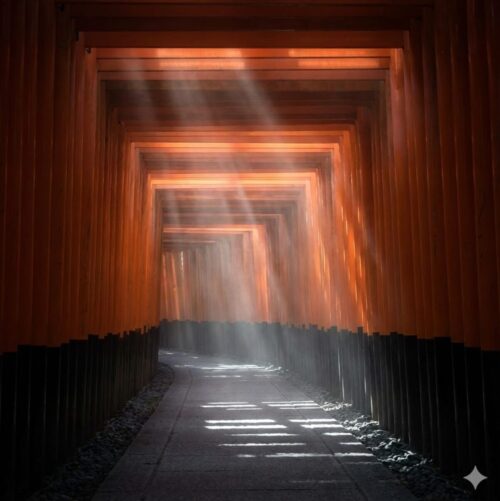 特に晴れた日の朝6時台〜7時頃は、隙間なく並ぶ朱色の鳥居の隙間から朝日が差し込んで、言葉にならないほど幻想的で神々しい光景に出会えます。