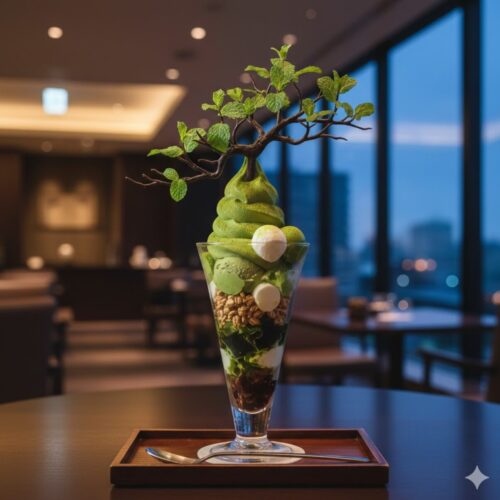 特に「京の盆栽」という名前の抹茶パフェは、その名の通り盆栽のような独創的なビジュアルで注目を集めています。