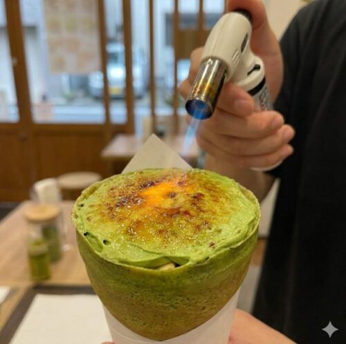 四条周辺では、クレープと抹茶を組み合わせたメニューが大人気です。特に私が推したいのが、「抹茶ブリュレ」です。